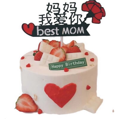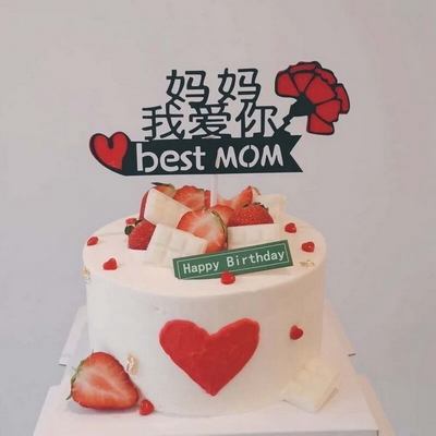 圓形水果夾心蛋糕,表面媽媽我愛(ài)你插件,時(shí)令水果,巧克力裝飾