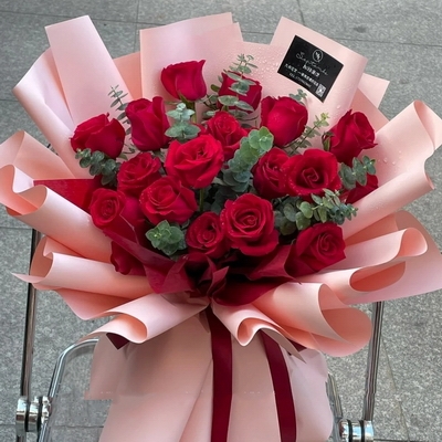 19支紅玫瑰,尤加利葉搭配