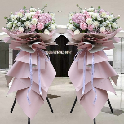 白玫瑰+粉玫瑰+粉繡球開業(yè)花籃一對(duì)