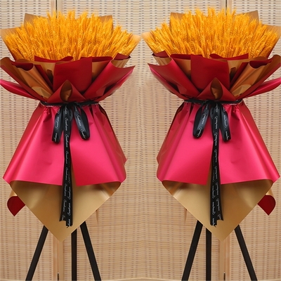 包 裝金色+紅色雙色霧面紙多層包裝,1.6m高三腳架花籃一對