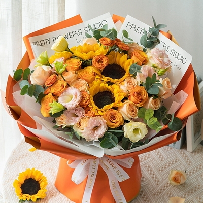 花材:玫瑰花 香檳玫 向日葵 送祝福