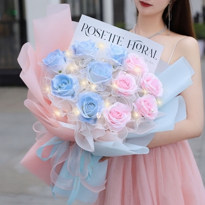 名 稱浪漫只給你(6枝碎冰藍5枝粉玫瑰)