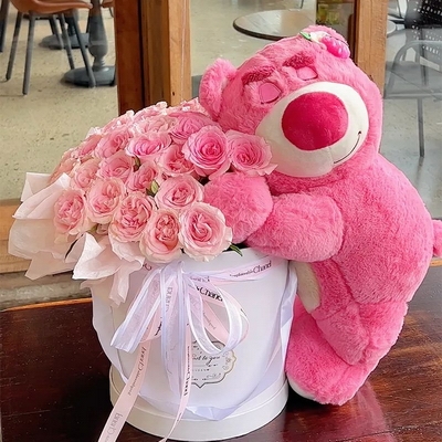 33枝洛神玫瑰,1個(gè)草莓趴趴熊